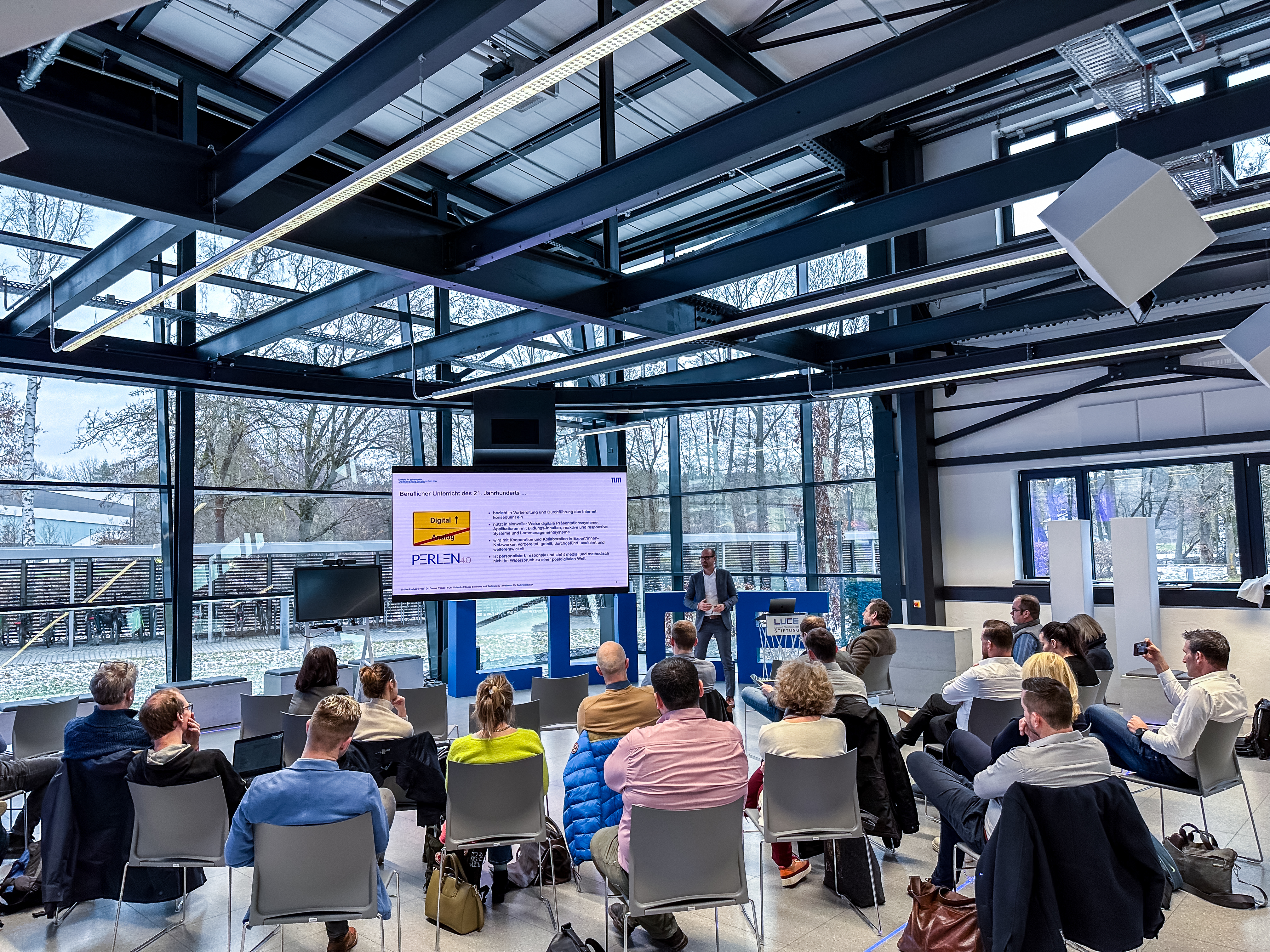 Im Rahmen der Arbeitstagung des Schulversuchs PERLEN 4.0 in Weiherhammer präsentierten Daniel Pittich und Tobias Ludwig die Ergebnisse der Studie zum Thema „Digitaler Unterricht als Entwicklungsaufgabe beruflicher Schulen“. Dadurch erhielten die Schulleitungen und Lehrkräfte neben den bereits durchgeführten schulspezifischen Rückmeldungen ergänzende Eindrücke der Gesamtauswertung. Die Reflexionen und spannenden Gespräche im Anschluss zeigten, dass die Ergebnisse die aktuellen Herausforderungen der Schulen sehr gut widerspiegeln. In Absprache mit der Stiftung Bildungspakt konnte dabei der Bedarf weiterführender Analysen konkretisiert werden.